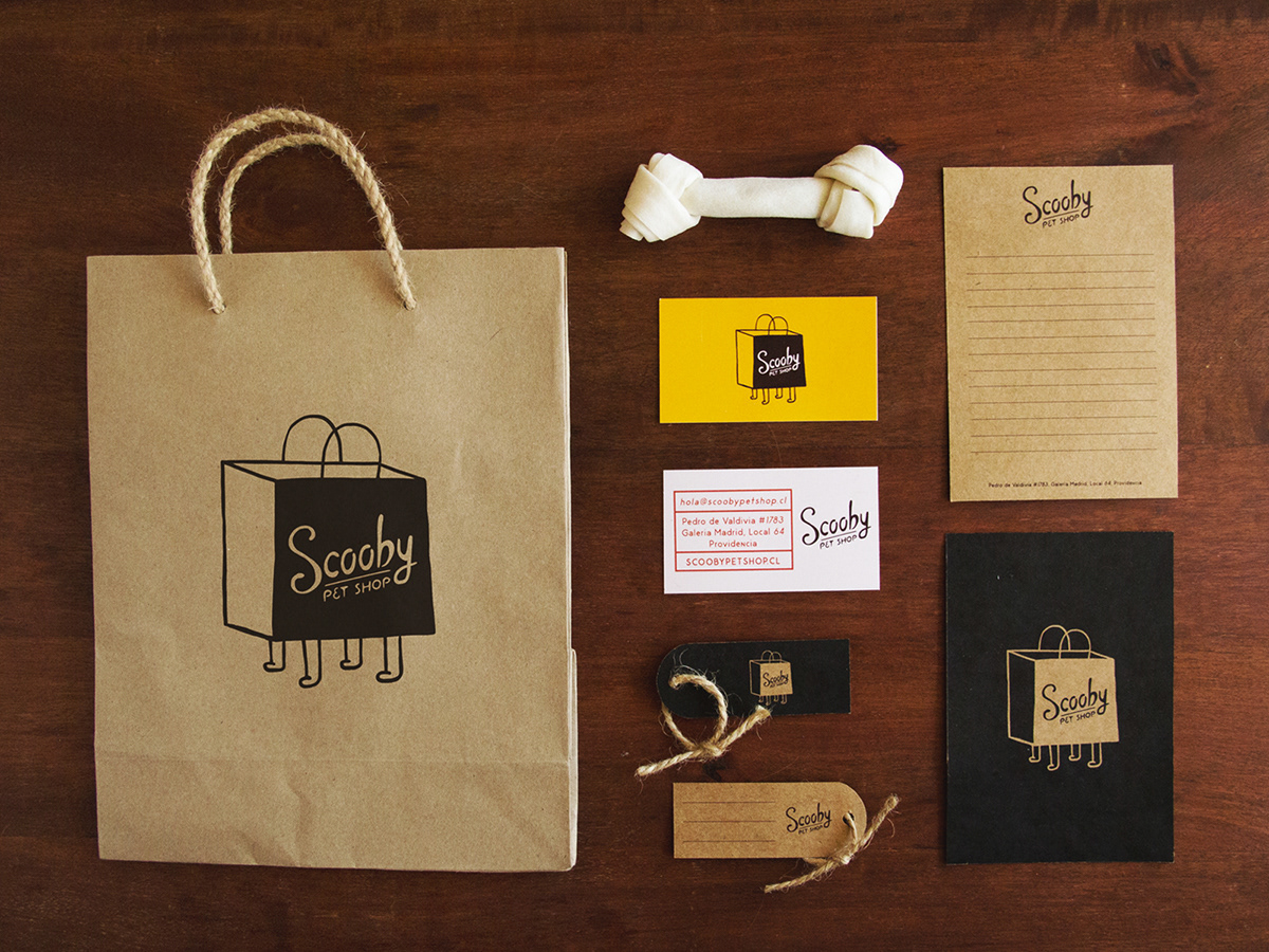Logotipo e identidad gráfica para la tienda Scooby Pet Shop.
